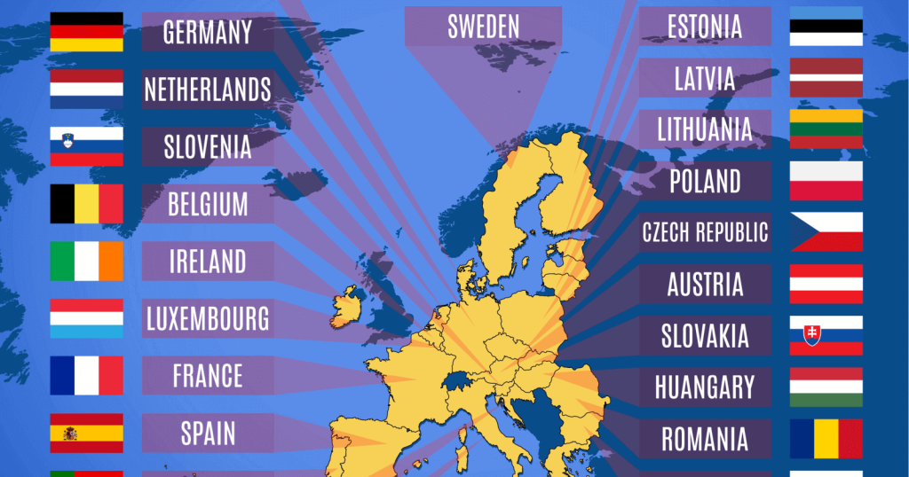 Các quốc gia khối Schengen 2019: Áo, Bỉ, Cộng hòa Séc, Đan Mạch, Estonia, Phần Lan, Pháp, Đức, Hy Lạp, Hungary, Iceland, Ý, Latvia, Liechtenstein, Litva, Luxembourg, Malta, Hà Lan, Na Uy, Ba Lan, Bồ Đào Nha, Slovakia, Slovenia, Tây Ban Nha,Thụy Điển và Thụy Sĩ.
